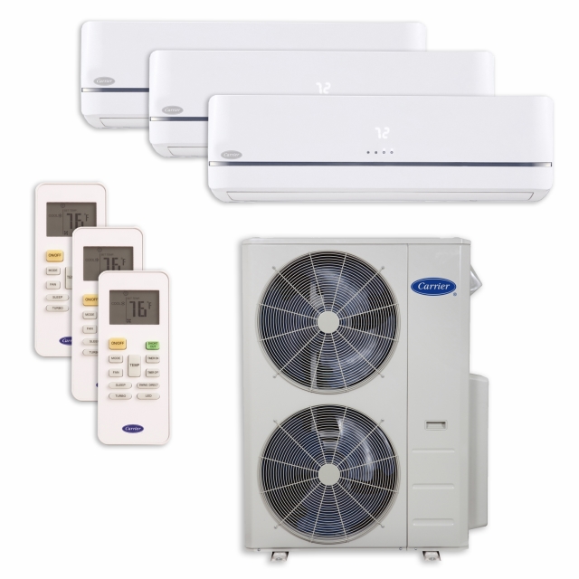 This Carrier 4 Ton MGR Series ductless inverter driven multi-zone system includes the outdoor heat pump and (3) Wall Mounted indoor units.