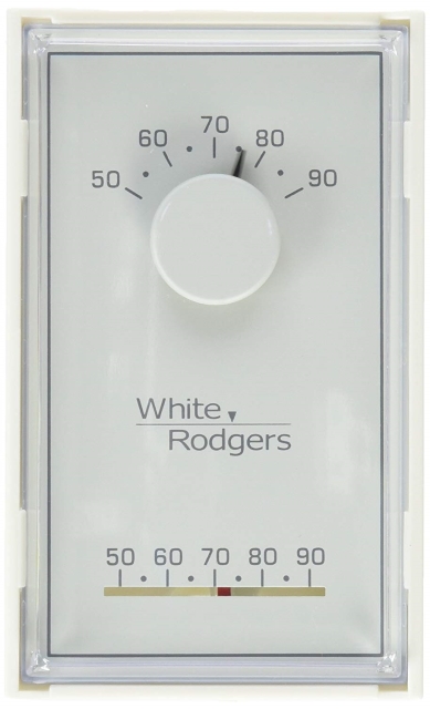 Emerson Electric Co. (White-Rodgers) 20 to 30 VAC, 50 to 90 Deg F, Snap Action, Classic White, Vertical Cover, Universal, Mechanical, 1-Heat/1-Cool Conventional/Heat Pump, Thermostat